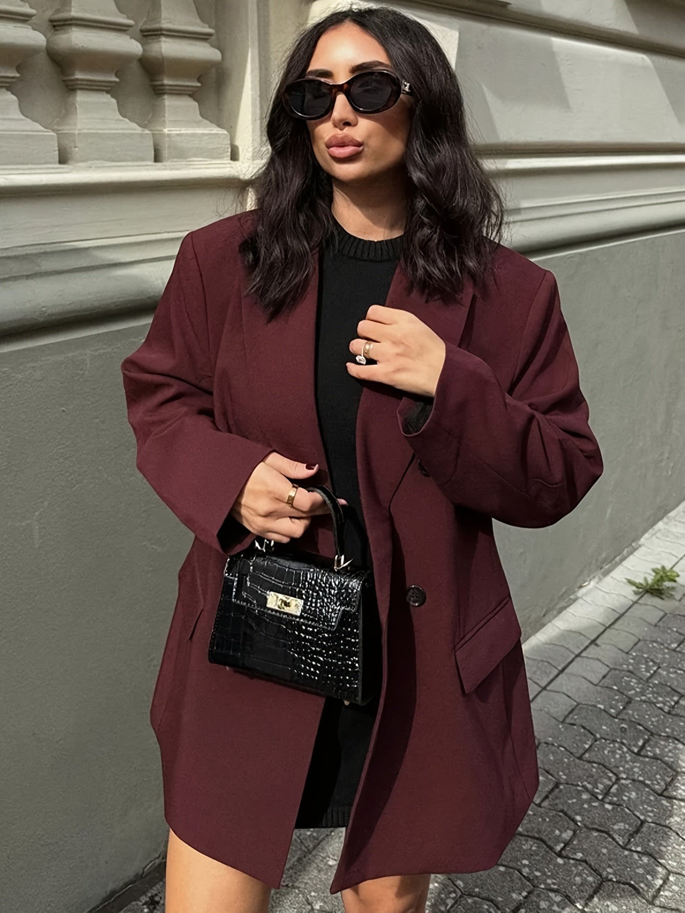Iréva - Blazer Oversize Classique Bordeaux pour Femme – Veste de Mi-Saison